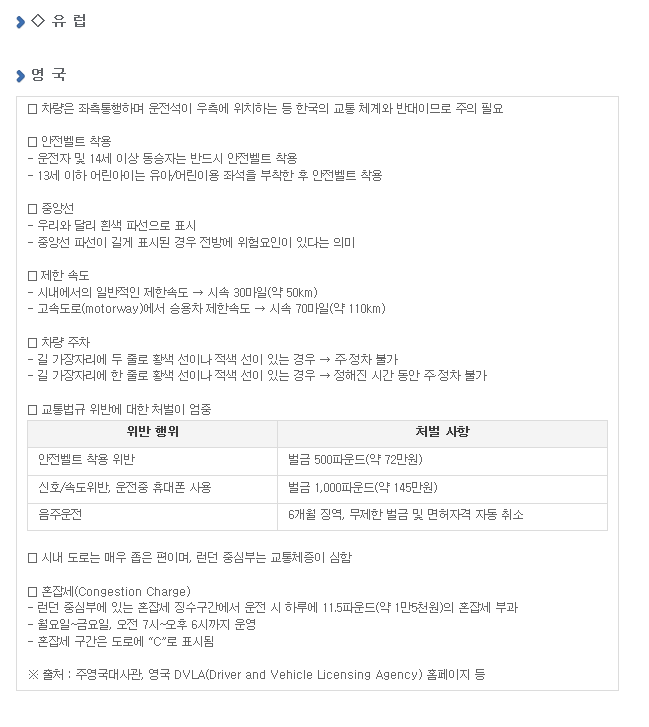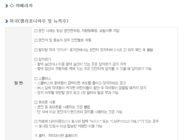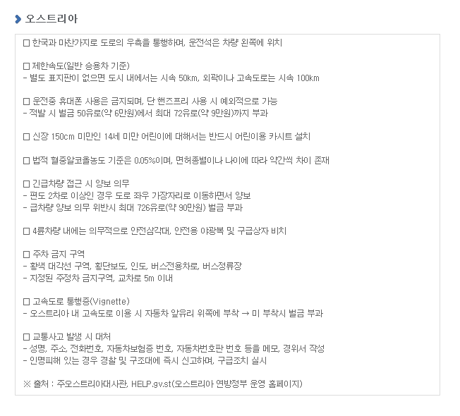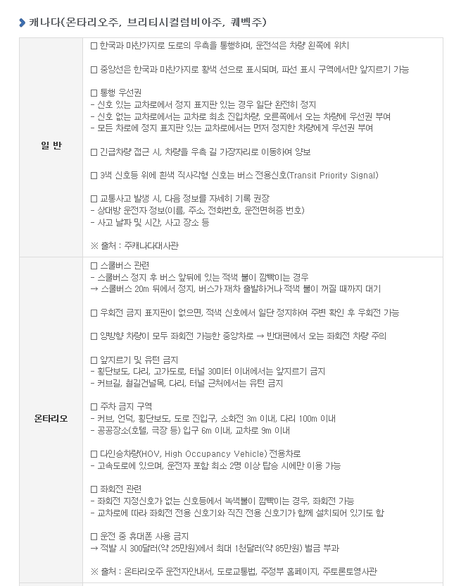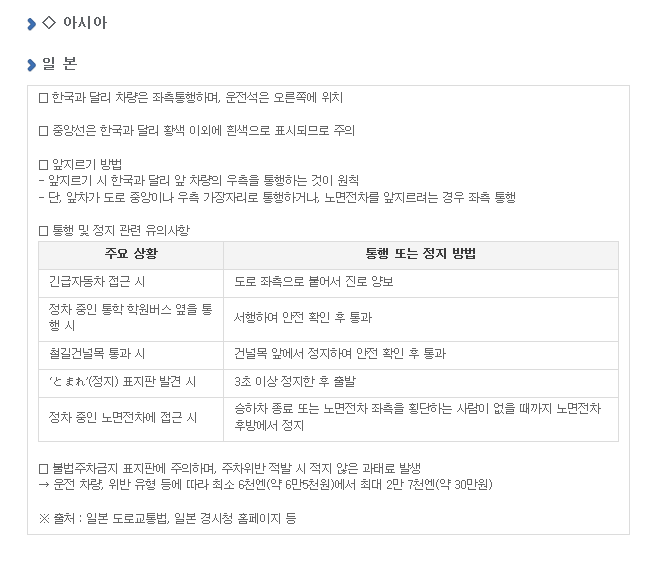 >>안전운전 유의사항 10개국