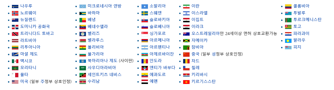 아래 나라들은 대한민국 운전면허 상호 불인정 국가들이다.