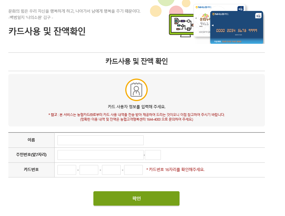 문화누리카드 잔액 확인을 전화나 문화누리 홈페이지에서도