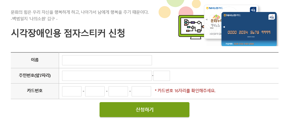 시각 장애인 분들을 위해서 점자스티커를 신청할 수 있습니다.