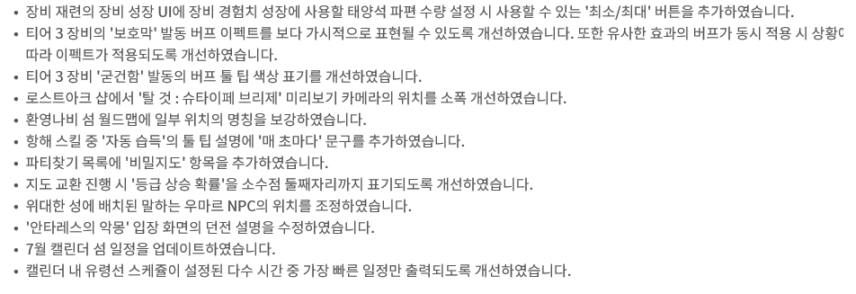 º 토벌 6단계 레이드 가디언 추가에 따라 파티 찾기 항목 및 이정표 정보, 주간 에포나 의뢰를 추가하였습니다.